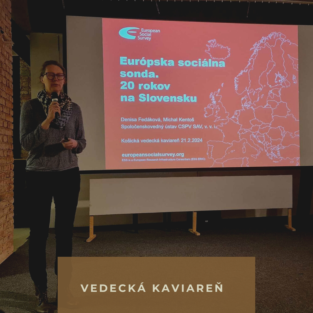 21. júna 2024Témou februárovej košickej vedeckej kaviarne bola Európska sociálna sonda (ESS). ESS je medzinárodný komparatívny prieskum názorov a postojov k rozličným spoločenským témam. Na Slovensku sa realizuje od roku 2004 a doposiaľ sa uskutočnilo 8 kôl zberu dát. Denisa Fedáková a Michal Kentoš, národní koordinátori Európskej sociálnej sondy, priblížili návštevníkom kaviarne zákulisie prestížneho európskeho prieskumu, ktorý je považovaný za vlajkovú loď všetkých zisťovaní o spoločnosti. Prieskumu, ktorý si od svojho začiatku zakladá na pevných metodologických princípoch. A prieskumu, ktorého riaditeľ, profesor Fitzgerald, získal v minulom roku Medzinárodnú cenu SAV v oblasti spoločenských vied. Početnému publiku priniesli odpovede na otázky:
